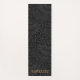 Boho Black Gray Botanische Muster Yoga Mat mit "Namaste" am unteren Rand.