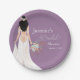 Diese rosafarbene Papiertafel besticht durch eine atemberaubende Boho Braut mit schwarzem Haar in einem zarten Hochzeitskleid. Verziert mit einem üppigen Blumenstrauß aus Rose, Pampasgras, Eukalyptus und Ranunculus.