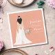 Diese Servietten sind mit einer atemberaubenden Boho-Braut in einem zarten Hochzeitskleid ausgestattet, schön mit einem üppigen Blumenstrauß aus Rose, Pampas-Gras, Eukalyptus und Ranunculus geschmückt.