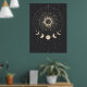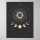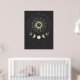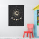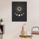 Boho Black und Beige Zodiac Moon Phases Poster mit der Sonne, Mondphasen, Sternen und Tierkreiszeichen.