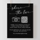Dieses boho schwarze Hochzeit teilen sich die Liebe QR-Code Poster ist perfekt für eine minimalistische Hochzeit. Das moderne böhmische Design besticht durch einfache rustikale Kalligraphie mit einem einzigartigen und dennoch klassischen Stil. Perfekt für jede Jahreszeit: Frühling, Sommer, Herbst oder Winter. Geben Sie Ihre Webadresse in den QR-Code-Bereich der Vorlage ein, und der QR-Code aktualisiert und verlinkt automatisch auf Ihre Website. Personalisieren Sie das Zeichen mit Ihrem Hochzeitshashtag für das Teilen von Fotos auf sozialen Medien.