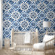 Boho Blau Mittelmeer Muster Pegel and Stick Tapete