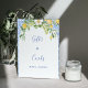 Boho Blauer Kachel und Lemon Hochzeitsplatz Sockelschild