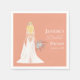 Diese Servietten sind mit einer atemberaubenden Boho-Braut in einem zarten Hochzeitskleid ausgestattet, schön mit einem üppigen Blumenstrauß aus Rose, Pampas-Gras, Eukalyptus und Ranunculus geschmückt.