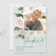 Die elegante Blumenankündigung mit dem Abschluss des Fotos zeigt ein viereckiges Foto, gerahmt von Aquarellfarben-Blume und Blattwerk in boho Wüste inspirierte Pfirsichtöne, Weiß, Elfenbein und Salbei-Grün. Personalisieren Sie Ihren Absolvent mit dem Namen, dem Unterrichtsjahr und der Schule. Fügen Sie der Rückseite eine persönliche Nachricht und ein zusätzliches Foto hinzu.