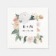 Boho schicke Hochzeitsnapkins verfügen über eine quadratische Aquarellgrenze von schlängelgrünem botanischem Blattwerk und pastellfarbenen Blume in Pfirsich-, Elfenbein- und Weißtönen, die Ihre Initialen oder Monogramm und Veranstaltungsdatum in modernen Schriften abbilden. Entworfen, um mit unserer Boho Blooms Hochzeit- und Veranstaltungskollektion zu koordinieren.