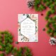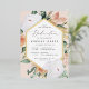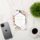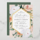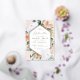 Die elegante Blumen-Widmung lädt mit einem lang gestreckten sechseckigen Rahmen aus Aquarellfarben und Blattwerk in boho Wüste inspirierte Pfirsichfarben, Weiß, Elfenbein und Salbei-Grün und mit Goldfolienbespannung zum Verweilen ein. Personalisieren Sie mit Ihrer Kirchenfeier und Party Details in modernen Schriften.