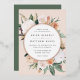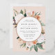 Elegante Blumen Hochzeitseinladung zeigt Ihre Hochzeitsdetails in modernen Schriften, Set in einem runden Rahmen von pastellfarbenen Aquarellfarben-Blume und botanisches Blattwerk in Wüste inspiriert Erdtönen von Pfirsich, Salbei, Weiß und Elfenbein. Rose Goldfolienbesatz rundet das Aussehen nach einer luxuriösen Touch ab.