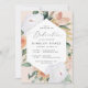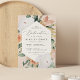 Die elegante Blumen-Widmung lädt mit einem lang gestreckten sechseckigen Rahmen aus Aquarellfarben und Blattwerk in boho Wüste inspirierte Pfirsichfarben, Weiß, Elfenbein und Salbei-Grün ein. Personalisieren Sie mit Ihrer Kirchenfeier und Party Details in modernen Schriften.