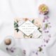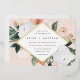 Elegante Blumen-Hochzeitseinladung kennzeichnet Ihre Hochzeitsdetails in modernem Schriftsatz, Set in einem geometrisch rautenförmigen Rahmen aus pastellfarbenen Blume und botanischem Blattwerk in Wüste inspirierte Erdtontöne von Pfirsich, Salbei Grün, Weiß und Elfenbein. Die Goldfolienbespannung rundet das Aussehen nach einer luxuriösen Touch ab.