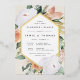 Das elegante Probe-Dinner lädt mit einem lang gestreckten sechseckigen Rahmen aus Aquarellfarben und Blattwerk in boho Wüste inspirierte Pfirsichtöne, Weiß, Elfenbein und Salbei-Grün und mit Goldfolienbespannung zum Verweilen ein. Personalisieren Sie Ihre Hochzeitsfeier mit Probe und Abendessen Details in modernen Schriften.