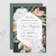 Elegante florale Fledermausmitzvah Einladung mit einem lang gestreckten sechseckigen Rahmen aus Aquarellfarben und Blattwerk in boho Wüste inspirierte Pfirsichfarben, Weiß, Elfenbein und Salbei grün. Personalisieren Sie Ihre Fledermausmitzvah Zeremonie und Party Details in modernen Schriften.
