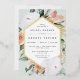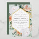Elegante Blumendusche mit sechseckiger Brautdusche mit lang gezogenem, sechseckigen Rahmen aus Aquarellfarben und Blattwerk in boho Wüste inspirierte Pfirsichtöne, Weiß, Elfenbein und Salbei grün und mit Goldfolienbespannung fertig. Personalisieren Sie Ihre Brautparty-Details in modernen Schriften.