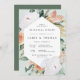 Das elegante, blumengeschmückte Dinner mit einer lang gestreckten sechseckigen Blume aus Aquarell und Blattwerk in boho Wüste inspirierte Pfirsichfarben, Weiß, Elfenbein und Salbei Grün. Personalisieren Sie Ihre Hochzeitsfeier mit Probe und Abendessen Details in modernen Schriften.