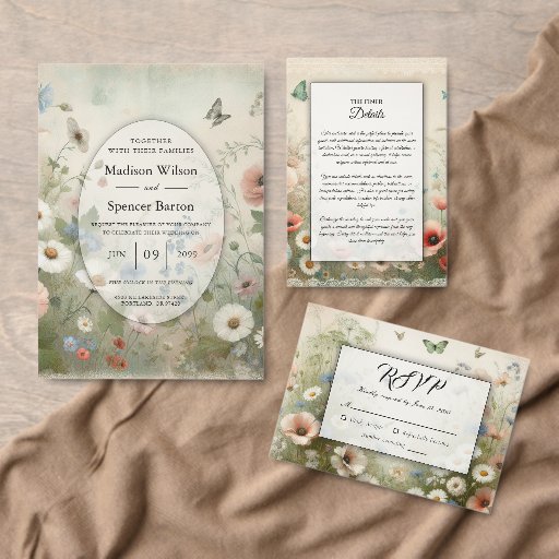 Feiern Sie Ihre Liebe mit der Hochzeitseinladung von Boho Blooms und Vintag Vows, wo Wildblume Charme und zeitlose Romantik aufeinander treffen. Mit sanften, Vintag inspirierten Blumen in gedämpften Tönen, zarten Spitzen-Details und natürlichen Texturen, vereint dieses Design den Geist der böhmischen Eleganz. Ideal für Hochzeiten im Freien, rustikale Orte oder Paare, die eine Touch Launen mit ihren Gelübden Liebe.