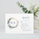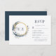 Boho Blue Floral Moon Monogram Wreath Wedding RSVP Karte