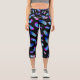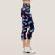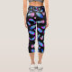 BOHO BLAUE PINK FEATHER PATTERN CAPRI LEGGING, FARBIG HELL GRADIENT BLAU PINK FEATHER FALLING ON BLACK HINTERGRUND