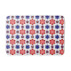 This bath mat features a beautiful colorful floral pattern of blue, purple and red stylized daisies against a white background; perfect for adding a touch of retro cuteness to your bathroom.
