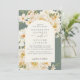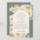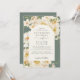 Die Hochzeitseinladung mit der grünen Erde bietet ein blumengeschmücktes, wasserfarbenes Blattwerk in weißen Blume mit warmen gelben, botanischen Blätter Blume-Bouquet. Die natürliche, erdfarbene Farbpalette macht es zu einem idealen Ort für Hochzeiten im Sommer, Hochzeiten, Hochzeiten im Herbst und rustikale Hochzeiten.