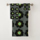 Schwarze Blume, botanisches Muster im Hippie-Stil. Boho Badezimmer Handtuch Set.