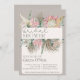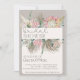 Boho Blume Braudusche Einladung mit einem weichen, Vintagen Farbschema. Rosa Blume und Pampasgras auf einem cremig grauen Hintergrund.