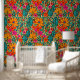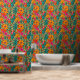 Tapete mit orangefarbenem, orangefarbenem und rosafarbenem Barockambiente. Blumentapete, um Ihrem Zimmer ein sehr lebendiges Gefühl zu geben.