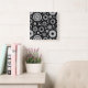 Boho Blume Schwarz-Weiß-Vektorblumenmuster Quadratische Wanduhr
