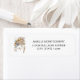 Adressetiketten mit einem hübschen Strauß an Blume in neutralen Farbtönen Braun, Pfirsich und Orange. Ein gefederter Träumer fügt einen eleganten mystischen Flair hinzu.
