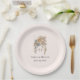 Teller aus Papier mit einem hübschen Strauß von Blume in neutralen Farben braun, pfirsichfarben und orange. Ein gefederter Träumer fügt einen eleganten mystischen Flair hinzu.