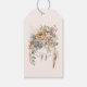 Geschenketiketten mit einem hübschen Bouquet von Blume in neutralen Farbtönen braun, pfirsichfarben und orange. Ein gefederter Träumer fügt einen eleganten mystischen Flair hinzu.