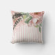 Dieses reizende, weibliche Dekorateurkissen hat einen boho Flair mit den rosa und weißen Streifen und den großen rosa Blumen mit Federn auf der Front und der Rückseite.