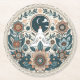 Ein bohischer Stil mit pastellfarbenen Blumenmotiven und persönlichem Meditieren, der Mond und die Sterne im Hintergrund und eine hübsche Dekoration
