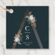 Eine romantische Gastgeschenk Hochzeit mit wunderschönen Vintagen Botanicals auf einer Rose goldene Pyramide auf einem texturalen Hintergrund mit Paaren gestapelt Monogramm und Hochzeitstag.