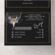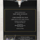 Ein wunderschönes Ganzjahresfrühlings-, Sommer-, Herbst- oder Wintererlebnis mit elegantem, mit Wildblumen geschmückten, blumenfarbenen Hirschschädel ist das Set vor einem schwarzen Hintergrund, auf dem Imitate strahlend weiße Saitenleuchten erscheinen. Ein Imitat goldener 3D-Rahmen erscheint rund um die modernen kalligraphischen und fett formatierten Schriftart-Vorlagen für Ihre personalisierte Formulierung, und der untere Drittel hat eine Abreißkarte mit personalisierter uAwg-Adresse für Ihre Gäste zu vervollständigen. Diese sind ideal für jeden Geburtstag, Quinceanera oder rustikale boho Land Western Thema Hochzeit. Die Hintergrundfarbe kann auch geändert werden, um Ihr Farbschema Anzug.