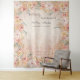 "Boho Blush Floral Pampas Gras rustikale Holz Hochzeitsband Foto Hintergrund." Weich pfirsichfarbenes Waschbecken mit rot-rosa, Buttergelb und blass-weiße Rosen sind mit Pampas-Gras, Farne und Eukalyptus-Blättergrün gepaart und sorgen für ein atemberaubendes Foto für Ihre Hochzeitsgäste. Erstellt aus handgemalten Aquarellkunst von international bekannter und lizenzierter Künstlerin, Audrey Jeanne Roberts, Copyright.