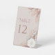 Auf diesem Schild auf dem bohligen Sockel befinden sich Pampas-Gras, getrocknete Blume, weiße Pfirsiche und Blätter aus Palmen auf einem staubigen Rose-Hintergrund. Finden Sie passende Artikel in der Boho Bluss Pampas Grass Collection.