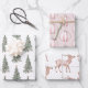 Boho Blush Pink Grüner Weihnachtsbaum Rentier Geschenkpapier Set