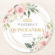 Boho Blush Rosa Blütengold Tiara Salbei Quinceaner Runder Pappuntersetzer