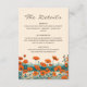 Dieser schöne bohmianische QR-Code die Details Hochzeit, verfügt über eine Tinte zeichnend von Mohn-Wildblumen mit rustikalen warmen Farben, orange und aquamarin, inspiriert in der traditionellen japanischen Kunst ukiyo-e oder japanischen Holzschnitten.