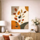 Ein warmes und natürliches Boho-Design mit abstrakten Formen und botanischen Blättern in reichen Erdtönen. Die Kombination aus weichen Texturen und natürlichen Elementen schafft eine beruhigende, aber visuell ansprechende Komposition, perfekt für moderne und bohemianische Innenräume.