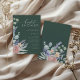 Erleben Sie Ihr Brautparty mit dieser bezaubernden, boho-inspiriert Einladung, die mit originalen Aquarellbildern für eine Touch natürlicher Eleganz ausgestattet ist. Lush Eukalyptus Blätter in ruhiger, rustikal grüner Verflechtung mit zarten Lavendel und blühenden Pfennigfuchtern, die eine skurrile Blumenarrangements schaffen. Set vor einem dunkelgrünen Hintergrund bietet das Design einen bemerkenswerten Kontrast, der seinen raffinierten und modernen Anklang verstärkt. Ideal für rustikale, gärtnerische oder zeitgenössische Feiern, verbindet diese Einladung natürliche Schönheit mit zeitlosem Charme. Passen Sie es einfach mit Ihren Veranstaltungsdetails an, um einen einzigartigen und unvergesslichen Sake für Ihr Brautparty zu erstellen.