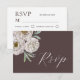 Boho Brown & Off White Watercolor Floral RSVP Karte