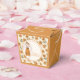 Celebrate your little one with this whimsical storybook favor box. The design features a charming hand-drawn bunny surrounded by a warm mustard yellow and burnt orange wildflower meadow. It is a perfect choice for guests at a gender-neutral autumn baby shower or a woodland-themed nursery celebration.