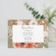 Die Rezeption ist mit einem orangefarbenen Rost, Pfirsichrot und cremefarbenem Blumenrahmen gestaltet. Die grüne, salzgrüne Vegetation um einen weißen Bogen auf einem grünen Hintergrund. Ein Monogramm rundet das einfache, aber elegante Aussehen dieser Einladung ab. Diese Karte ist Teil der Boho Burnt Orange Fall Floral Arch Monogram Wedding Suite der Karten erstellt von Simply Farmhouse Press.