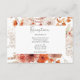 Die Rezeption ist mit einem orangefarbenen Rost, Pfirsichrot und cremefarbenem Blumenrahmen gestaltet. Die grüne Farbe Weiß um einen weißen Bogen auf weißem Hintergrund. Ein Monogramm rundet das einfache, aber elegante Aussehen dieser Einladung ab. Diese Karte ist Teil der Boho Burnt Orange Fall Floral Arch Monogram Wedding Suite der Karten erstellt von Simply Farmhouse Press.