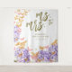 Eine schicke, schlichte, moderne, elegante, formale und elegante Brautparty-Kulisse mit dem Titel "Miss to Mrs." mit einem Gartenhintergrund aus üppig lila Hydrangeas und Goldschmetterlingen (das ist ein digitaler Effekt, nicht echtes Gold) und moderner Kalligrafie. Ein elegantes, zeitloses Design, das traditionelles, formales Hochzeitsdesign mit moderner Skriptkalligraphie und einem trendigen Layout verbindet.