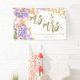 Eine schicke, schlichte, moderne, elegante, formale und elegante Brautparty-Kulisse mit dem Titel "Miss to Mrs." mit einem Gartenhintergrund aus üppig lila Hydrangeas und Goldschmetterlingen (das ist ein digitaler Effekt, nicht echtes Gold) und moderner Kalligrafie. Ein elegantes, zeitloses Design, das traditionelles, formales Hochzeitsdesign mit moderner Skriptkalligraphie und einem trendigen Layout verbindet.