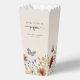 Machen Sie Ihre Hochzeit mit unseren Boho Butterfly Popcorn Gefälligkeitsboxen mit dem Satz 'Unsere Liebe ist Poppin' und den Namen der Braut und des Bräutigams besonders angenehm. Das skurrile Schmetterlingsmuster und das erdige Blumendesign fügen eine spielerische und charmante Touch hinzu, die sich perfekt für ein böhmisches Fest eignet, an das sich Ihre Gäste erinnern werden.
