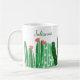 Diese stilvolle Tasse zeichnet sich durch ein einfaches, modernes und niedliches Gemälde einer Reihe von Wüstenkakteen in Grün mit hübsch rosa Blume in einem boho whimsical Stil aus. Personalisieren Sie es mit Ihrem Namen. Tolle Geschenkidee!