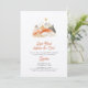 Niedliches boho Camping / Glamping "letzter Weg vor dem Schleier' Bachelorette Wochenende Einladung mit Reiseroute auf der Rückseite mit wunderschönen Orange, Terrakotta, gewachsen und grau Farbschema.